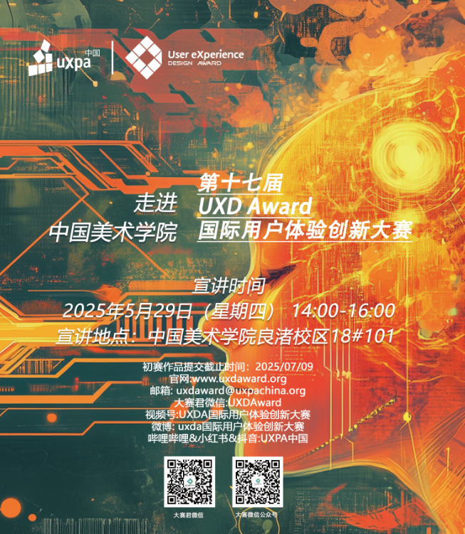 宣讲预告 | 2025第十七届UXDA大赛校园行 – 5月29日中国美术学院