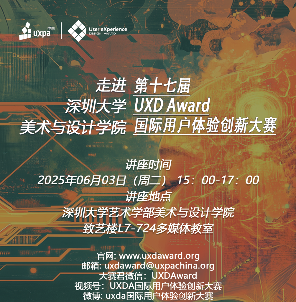宣讲预告 | 2025第十七届UXDA大赛校园行 – 6月3日深圳大学