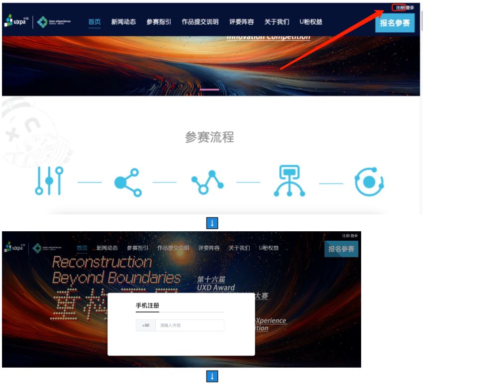 进入国际用体验创新大赛官网(http://2024uxda.awardclub.cn/#/),在首页右上角点击【注册】,点击【手机注册】(仅限使用手机号注册),设置完账号密码后,显示【注册成功】,最后点击【确定】即可。