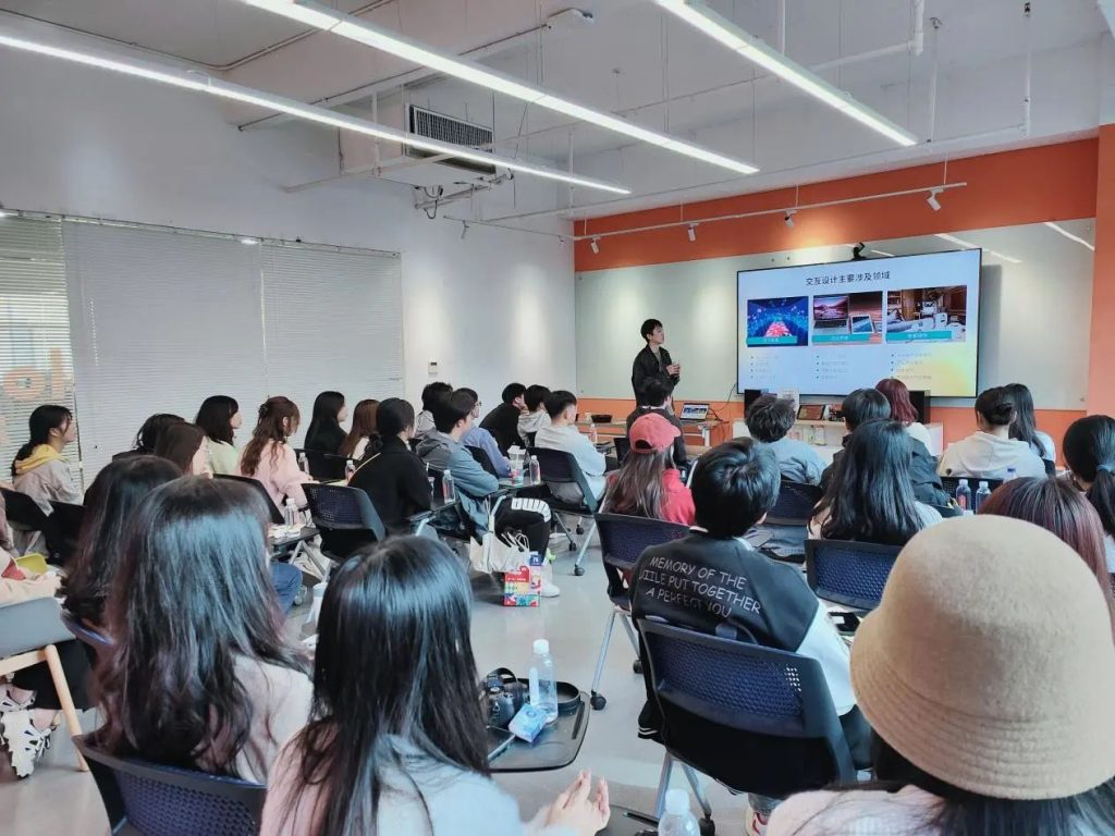 陈潇航则以《从校园到职场,如何成为互联网产品设计师》为主题,给同学们分享了怎么快速上手产品设计工作,以及从学生到职场打工人身份转变的经验总结,希望帮助同学们在未来的职场中少踩坑,提前做好求职准备。