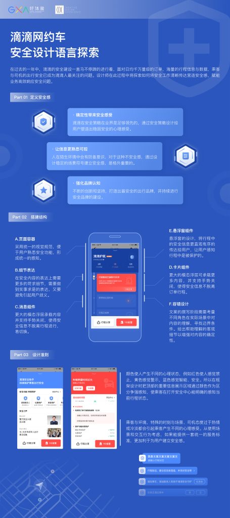 钟承东:在滴滴出现了一些安全事件之后,通过多方面进行安全壁垒的构建。而本设计在构建乘客与司机的安全感上进行了积极的探索。