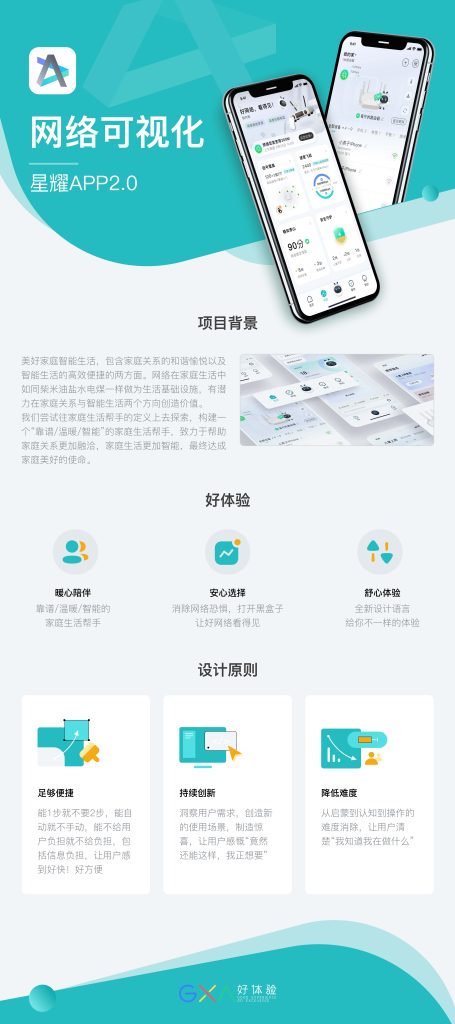 评语:该产品虽然是一个技术型产品,但通过以人为中心的设计,深度探寻用户需求,让偏技术化的网络,通过可视化的设计得以更容易理解和使用。基于用户需求的设计,在最简单的方式下解决用户的核心痛点,易用性好。较好的家庭复杂管理系统。